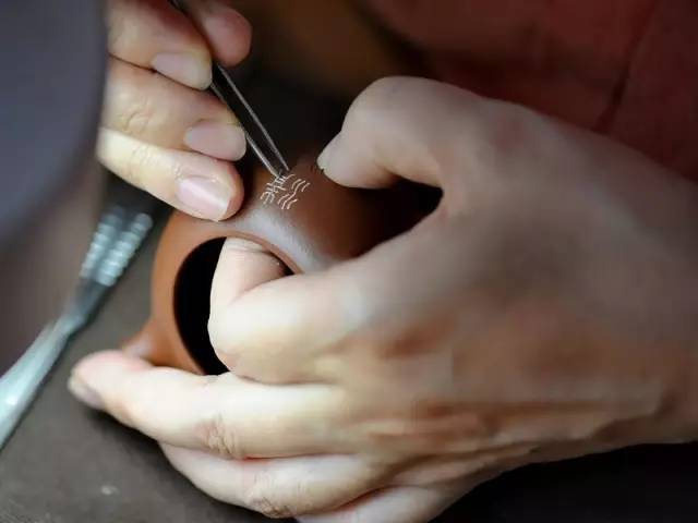 ▲紫砂壺銀絲鑲嵌過(guò)程
